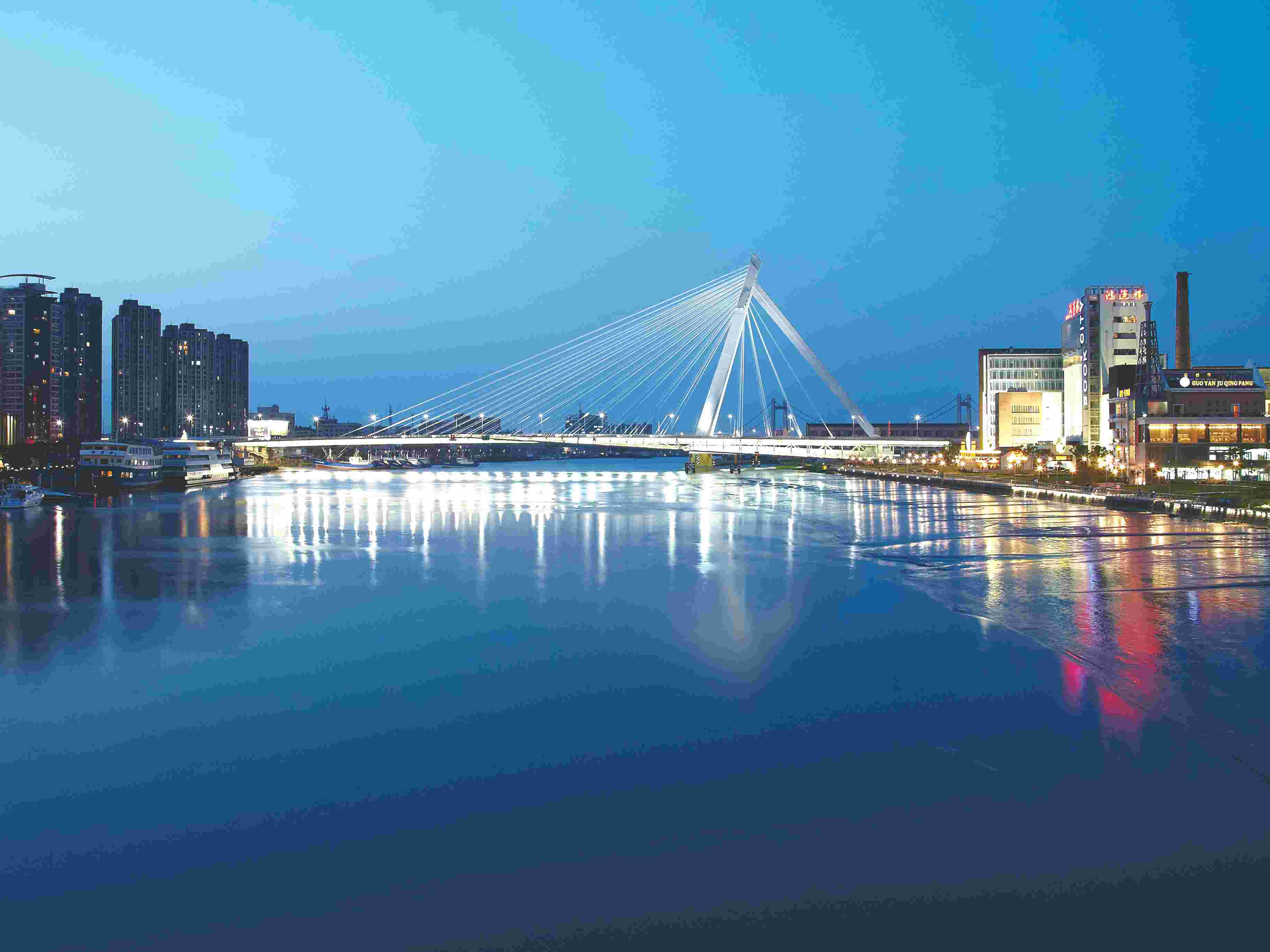 寧波外灘大橋,全長(zhǎng)1396米,主橋設(shè)計(jì)采用國(guó)內(nèi)首創(chuàng)的三角形獨(dú)塔四索面異形斜拉橋,造型新穎,結(jié)構(gòu)復(fù)雜。