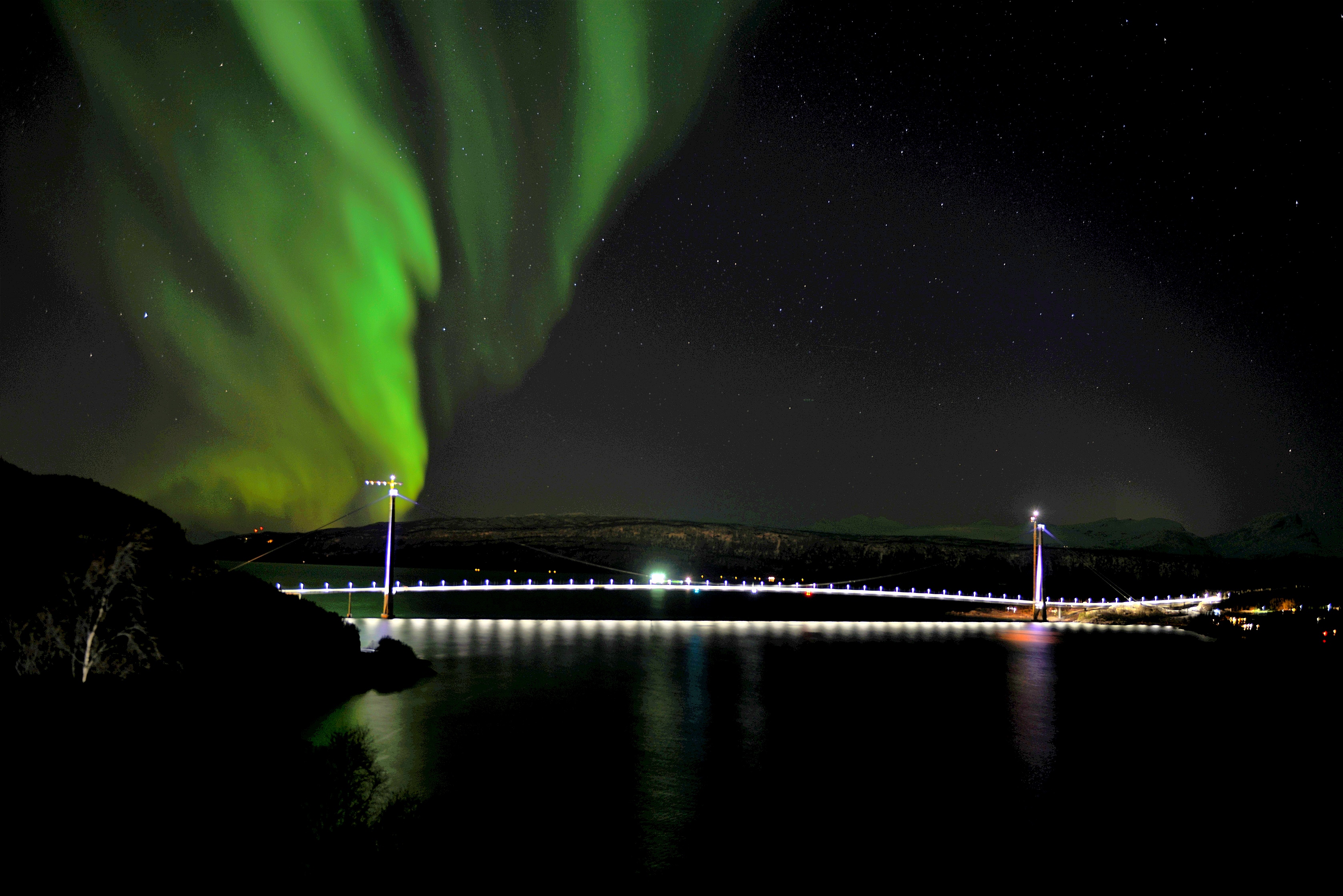 挪威哈羅格蘭德跨海大橋,總長(zhǎng)1533米,主跨1145米的鋼箱梁懸索橋,在同類(lèi)大橋中歐洲排名第5位,世界排名第17位。